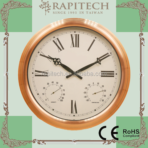 Termômetro e higrômetro embutido, relógio de metal de 15 polegadas para áreas externas e jardim